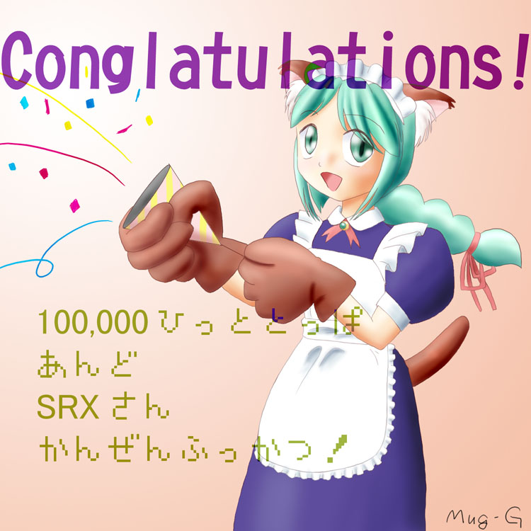 25:Mug−Gさんからの10万HIT記念CG (猫メイドぉぉぉぉぉぉ!!←こんなんばっか) 入手日:2000/6/19 |