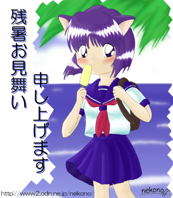 13:nekonoさんからの暑中見舞いCG (セーラー服&ねこ耳〜♪♪←もうええ!!) 入手日:1999/8/23 |