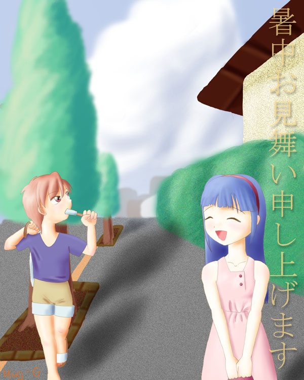 28:Mug−Gさんからの暑中見舞いCG (いやー暑い日が続きますねぇ〜←謎) 入手日:2000/8/17 |